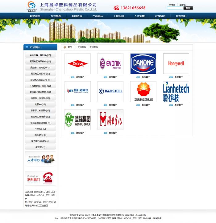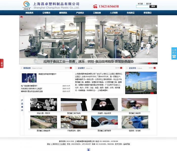 上海昌卓塑料制品有限公司廠址位于上海松江工業園區(國家級工業園區),占地15000多平方米,廠房8000平方米, 是一家集生產、銷售和服務為一體的公司。公司依托上海科研院所,專業生產純聚四氟乙烯,氟橡膠,硅橡膠系列制品,以及聚四氟乙烯,氟橡膠,硅橡膠與高強纖維的復合材料等等,廣泛應用于石油化工、化纖、電力、環保、冶金、食品、醫藥、造紙、水利、城市建設、機械制造、科研等行業。