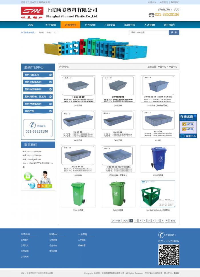 上海順美塑料制品有限公司是生產各種規(guī)格塑料托盤及各種塑料制品(如啤酒箱和物流周轉箱等)的專業(yè)企業(yè)。公司坐落于世界知名的上海市松江東部工業(yè)區(qū),創(chuàng)建于2003年,占地面積20000平方米,現有固定資產8000萬元,從業(yè)員工200名(其中高級技工12名、技術人員27名)。公司自成立以來,大膽的引進德國先進的生產設備和技術,以市場需求為導向,運用科學的配方指導生產作業(yè),憑著優(yōu)良的技術及誠信的理念,以高技術含量、高質量品位為標準。