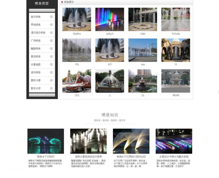 網站描述:首頁采用企業型網站排版方式,以簡潔化排版方式,突顯公司實力,以實際案例展示,表明公司業務范圍。首頁包含版塊有關于我們版塊,產品中心版塊,噴泉知識版塊,噴泉設備版塊,新聞動態版塊,工程案例版塊。