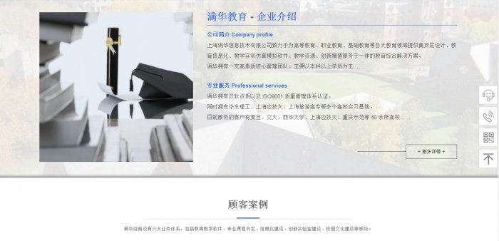 滿華擁有一支高素質(zhì)核心管理團隊,主要以本科以上學歷為主,團隊主要成員都有多年的教育行業(yè)從業(yè)經(jīng)驗。此外,滿華還有由復旦、交大、北京師大、華東師大、華東理工以及上海應技大等多位專家組成的顧問團隊。滿華擁有雙軟資質(zhì)以及 ISO9001 質(zhì)量管理體系認證。同時擁有華東理工、上海應技大、上海旅游高專等多個高校實習基地。